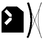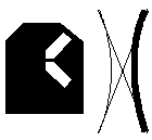 | dwie białe strzały na czarnym tle, zwrócone ostrzem ku sobie, tworzące kąt prosty, otwarty w lewo |