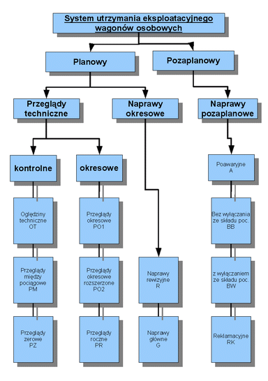 5. Graficzne przedstawienie struktury systemu utrzymania eksploatacyjnego wagonów osobowych przedstawione jest na rys. 1.