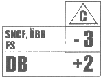 Oznaczenie wagonów do przewozu nadwozi wymiennych o przeładunku pionowym (NW), których parametry są korzystniejsze od wymogów dla wagonów oznaczonych "C" | Na ostojnicy z lewej strony wagonu |