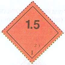 W dolnej połowie nalepki wpisana jest litera odpowiedniej grupy zdolności w/g RID. W dolnym rogu nalepki umieszczona jest mała cyfra "1".