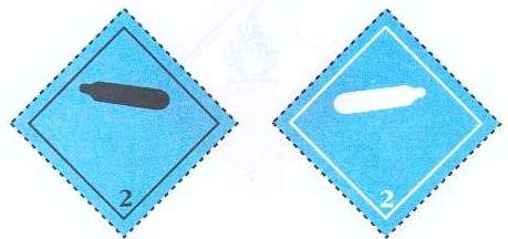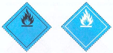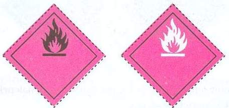 Na wagonie umieszczona jest jedna z powyższych nalepek. Napisy, cyfry lub litery umieszczone w dolnej połowie znaku lub nalepki wskazują na rodzaj grożącego niebezpieczeństwa - w/g RID załącznik 1.